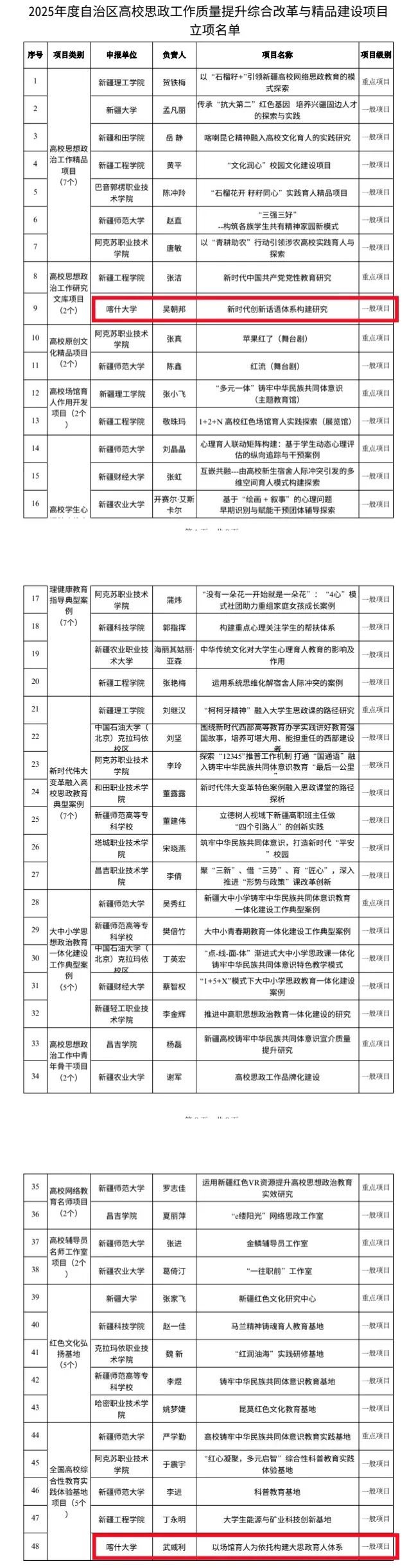 作为自治区首批入选的高校,我校将严格按照项目建设计划,扎实推进项目实施、完善优化建设,积极推动自治区新时代高校思想政治工作提质增效、创新发展。