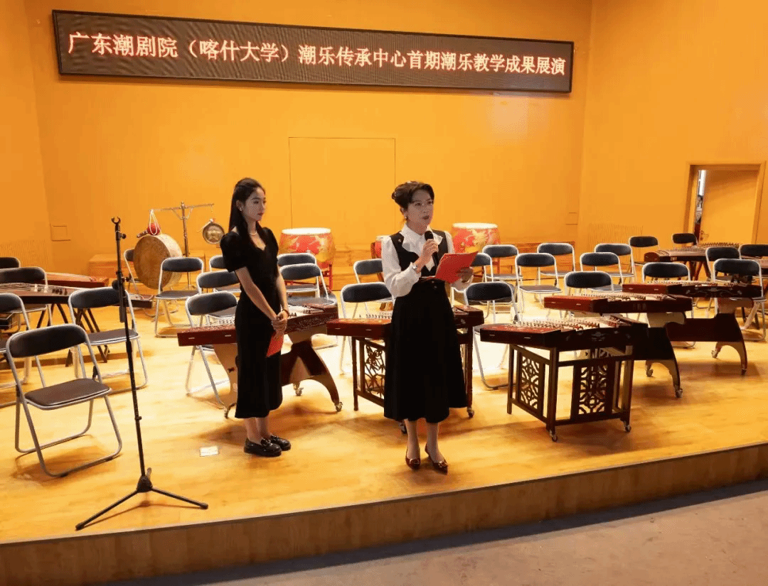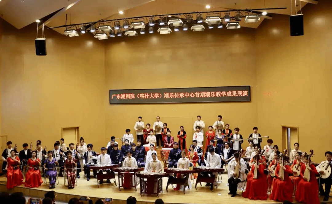 喀什传潮乐,万里曲相连。11月10日,广东潮剧院(喀什大学)潮乐传承中心迎来了首期结业典礼,出席此次结业典礼的领导有喀什地委宣传部副部长、广东援疆指挥部综合处处长林成伟、喀什大学党委宣传部副部长武威利、喀什大学音乐与舞蹈学院党总支书记任飞、院长王英阁、广东潮剧院汕头潮乐团团长余琼莹,以及汕头潮乐团优秀青年演奏家代表、南方报业传媒集团记者团、音乐与舞蹈学院师生代表。