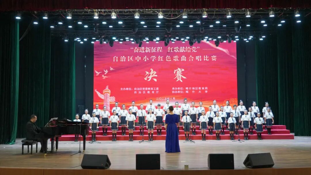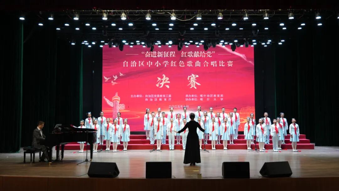 “奋进新征程 红歌献给党”自治区中小学红色歌曲合唱比赛决赛在喀什大学举办,来自全疆中小学的37支队伍1600余名师生齐聚一堂共赴这场红色音乐盛宴