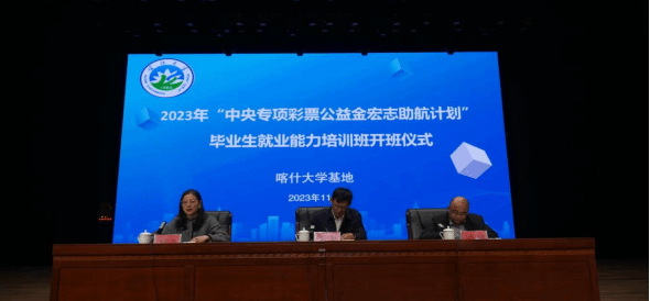 为深入学习党的二十大精神,贯彻落实习近平总书记关于高校毕业生就业创业工作重要指示批示及党中央、国务院“稳就业”“保就业”的决策部署,进一步提高毕业生的综合素养及就业竞争力,11月11日,“中央专项彩票公益金宏志助航计划”喀什大学基地毕业生就业能力培训班开班仪式在喀什大学新泉校区新时代会堂举行。喀什大学校党委副书记邓勇,喀什职业技术学院副院长木合塔尔江·热合曼,我校相关部门、学院负责人,以及喀什职业技术学院参赛学员参加了本次开班仪式。仪式由喀什大学就业指导中心负责人主持。