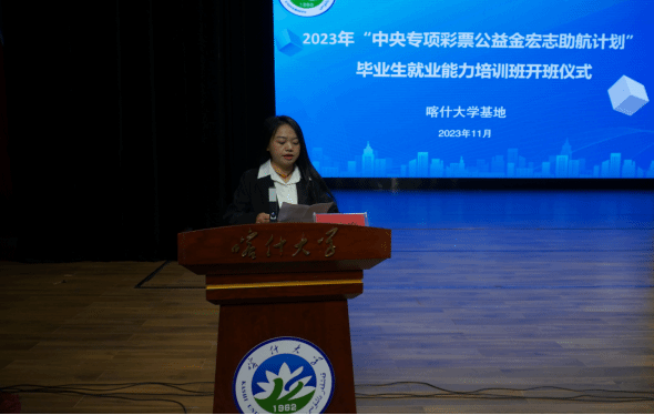 仪式上,喀什大学就业指导中心负责人总结了“中央专项彩票公益金宏志助航计划”喀什大学基地组织开展培训工作取得的成效和经验做法;介绍了为确保本次培训工作高效进行,喀什大学基地将会加强课程建设和师资队伍建设,采取课前调研和课后总结等方式,认真组织讲师团成员说课、评课、集体备课,不断优化课程内容,注重课程内容的实操性和实效性,更加精准、全面、细致地做好参训学员的就业指导帮扶工作,助推宏志助航学员更加高质量充分就业。