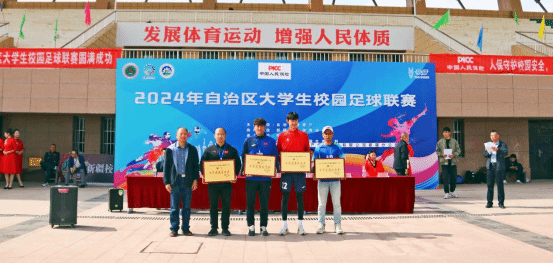 10月16日,2024年自治区大学生校园足球联赛颁奖仪式在喀什大学新泉校区隆重举行,自治区教育厅党组成员、副厅长海拉提,喀什大学党委副书记、校长买买提明·木沙,喀什大学党委副书记赵斌,新疆农业大学党委常委、副校长刘志怀等出席颁奖仪式。