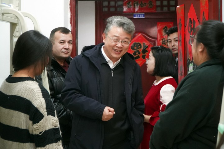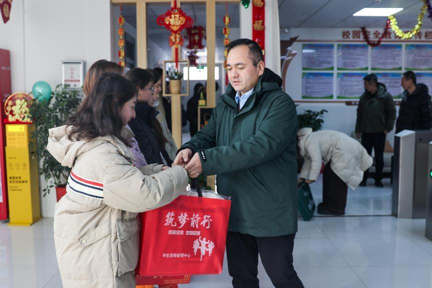 为促进学校教育教学工作持续、健康、和谐发展,不断增强学生的幸福感和获得感,2024年12月31日,我校在三校区同时开展元旦慰问学生活动。校党委副书记、校长买买提明·木沙,校党委副书记赵斌,校党委常委、副校长伊力哈木江·吾买尔带队,党委学生工作部、各学院负责人及辅导员参加慰问。