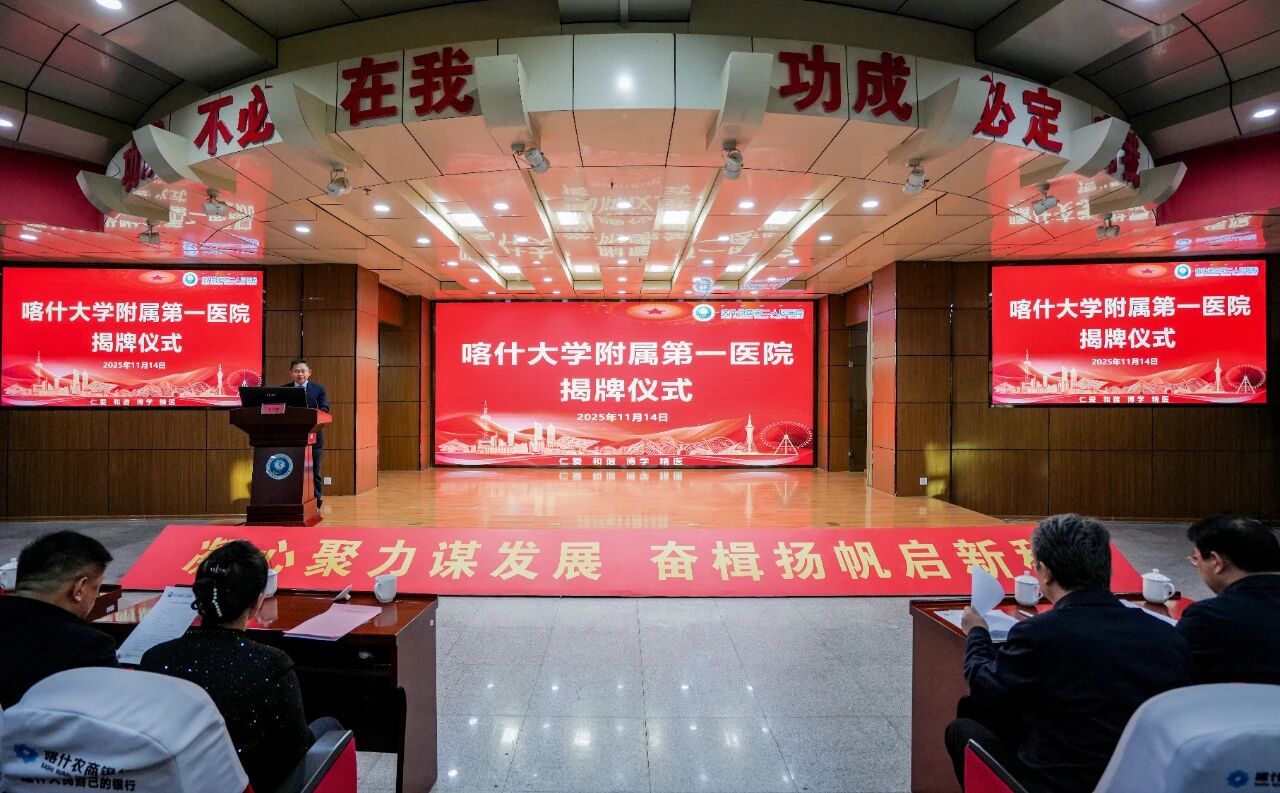 11月14日,喀什大学附属第一医院揭牌仪式在喀什地区第二人民医院举行,这标志着喀什大学医学教育迈入“校院一体”发展的新阶段,也标志着学校在深化校地合作、推动区域卫生健康事业高质量发展方面开启了新征程。