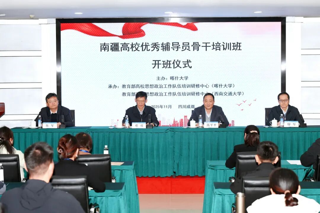 为深入贯彻落实立德树人根本任务,充分发挥教育部高校思想政治工作队伍培训研修中心(喀什大学)的辐射引领作用,切实提升南疆高校思想政治工作队伍专业素养与业务能力,11月19日至23日,由西南交通大学和喀什大学联合举办的南疆高校优秀辅导员能力提升培训班在西南交通大学圆满落幕。西南交通大学党委副书记高平平、喀什大学党委副书记邓勇出席开班仪式并作动员讲话,喀什大学学生工作党总支书记及党委学生工作部负责人带队,来自南疆5所高校的31名优秀辅导员代表参与培训。