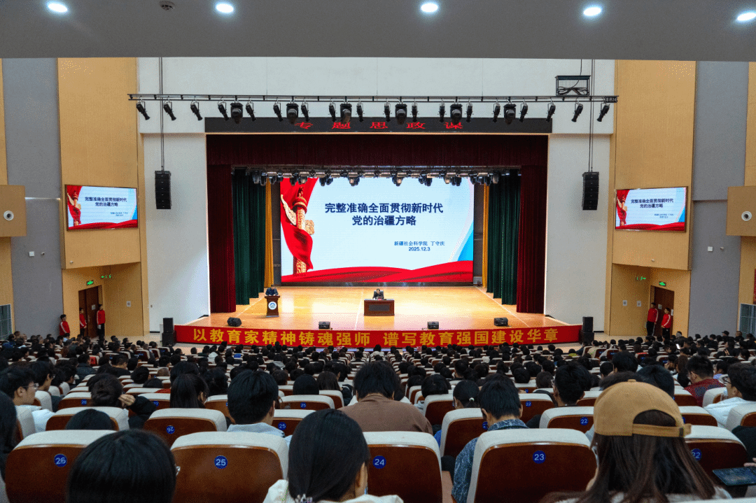 丁守庆围绕主题,从全面系统认识新疆区情、梳理治疆方略的历史脉络、阐释理论逻辑、明确实践路径四个维度层层剖析、娓娓道来。他的讲解不仅有深厚的理论底蕴作为支撑,还融入了鲜活的实践案例,生动展现了新时代党的治疆方略的核心要旨与精神内涵,为我校师生带来了一场“理论有高度、案例有温度、实践有力度”的思政精品课程。