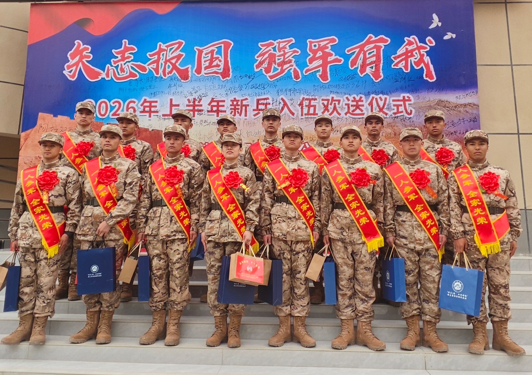 仪式现场,校党委学生工作部、保卫处(校武装部)相关负责同志代表学校党委向即将踏上军旅征程的新兵学子致以最诚挚的祝福和最崇高的敬意,亲手为他们佩戴光荣大红花、送上纪念礼品,嘱托他们要坚定理想信念,铸牢对党忠诚的政治品格,让青春之花绽放在党和人民需要的地方;要矢志拼搏奋斗,在军营的熔炉里刻苦训练、练就过硬本领;要严守纪律规矩,时刻展现喀大学子的优良作风。同时,希望他们始终牢记并践行 “胡杨般坚韧、红烛般奉献” 的喀大精神,努力成长为有灵魂、有本事、有血性、有品德的新时代革命军人,将青春热血深深融入强军实践的壮阔征程。