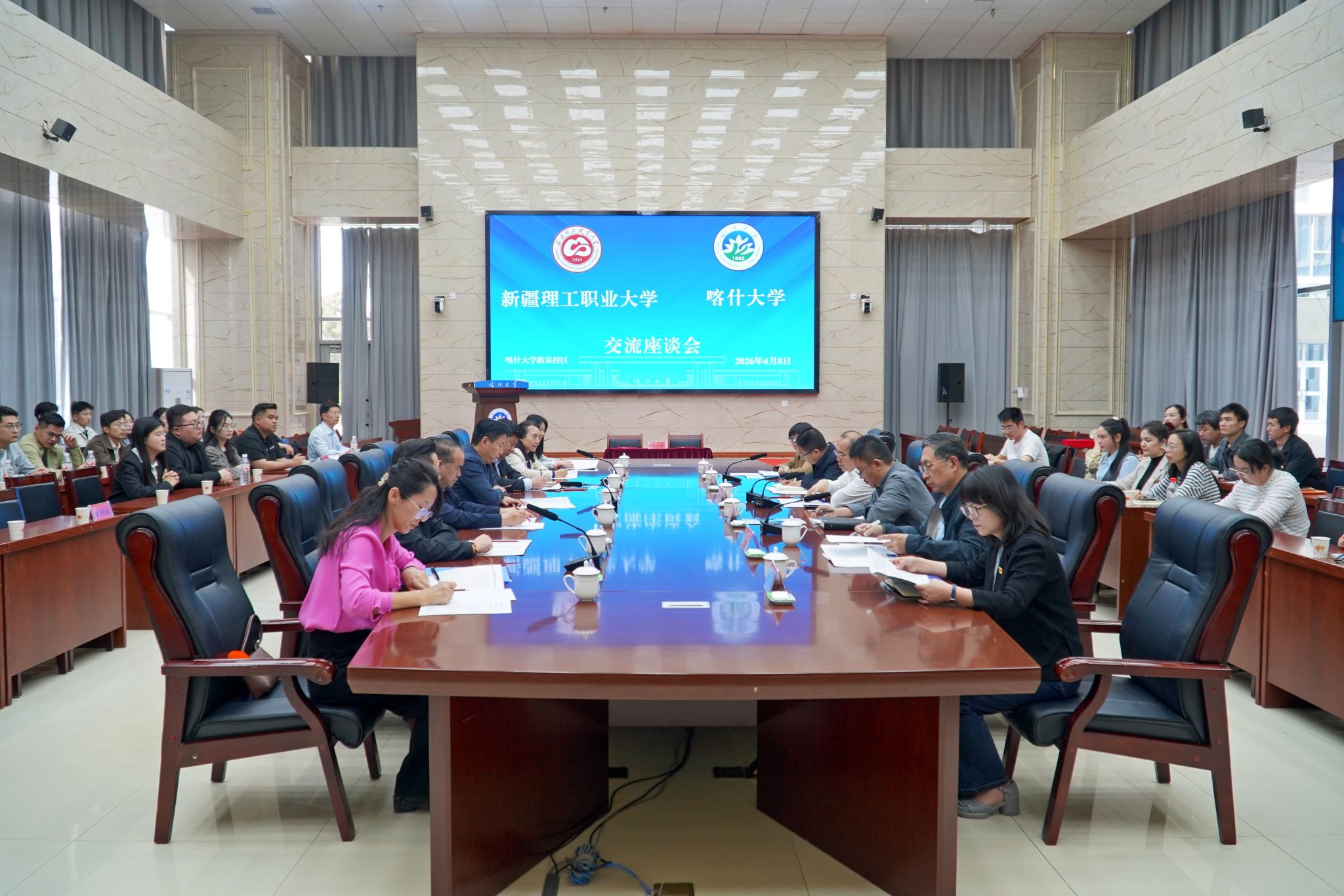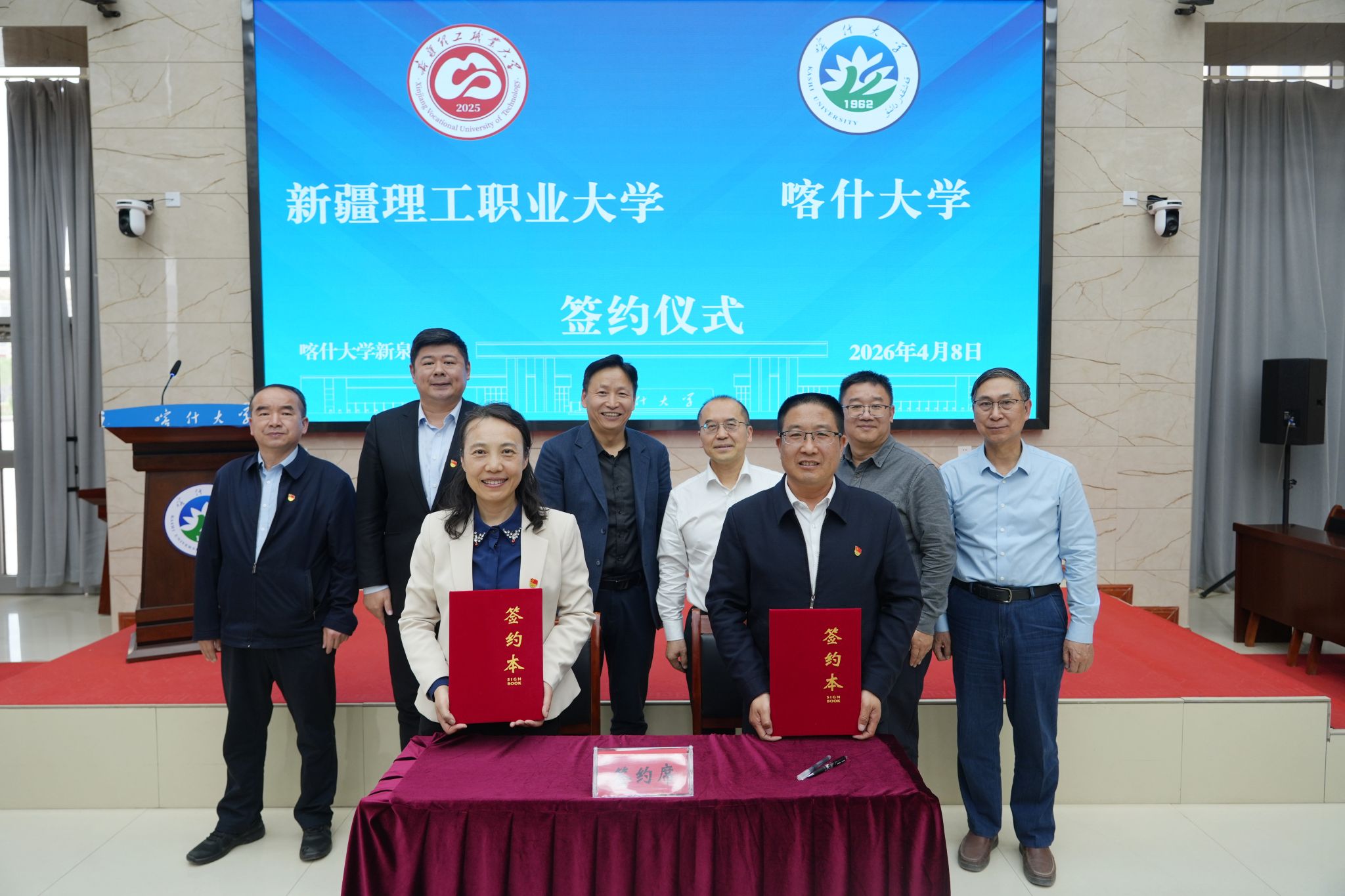 座谈后,喀什大学电子与通信工程学院与新疆理工职业大学人工智能学院签订合作框架协议,6名教师代表现场签署结对交友联系卡,通过党建共建、结对交友以常态化机制深化校际协同育人实效。